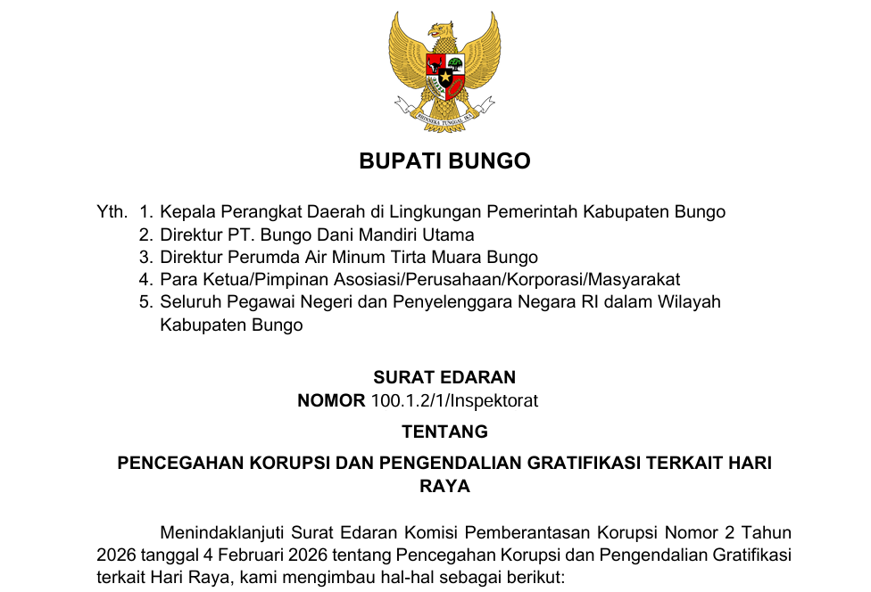 Bungokab.go.id, Muara Bungo - Bupati Bungo H. Dedy Putra menyambut kedatangan Komandan Korem (Danrem) 042/Garuda Putih Jambi, Kolonel Inf Nyamin, SIP,…