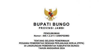 Sebagai tindak lanjut keputusan menteri pendayagunaan aparatur negara dan reformasi birokrasi Republik Indonesia nomor293 tahun 2024 tentang penetapan kebutuhan pegawai negeri sipil di lingkungan Pemerintah Kabupaten Bungo tahun anggaran 2024,…