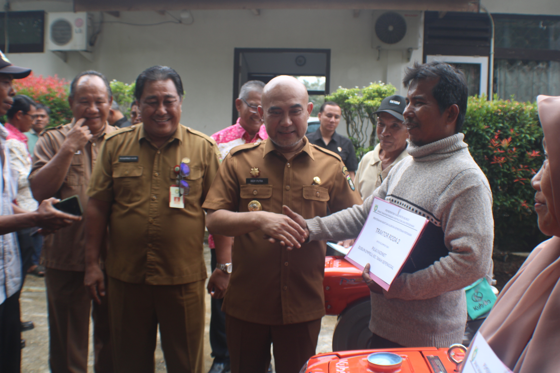 Dalam kesempatan tersebut, Bupati Bungo juga secara simbolis menyerahkan sejumlah alat dan mesin pertanian (Alsintan) kepada beberapa kelompok tani penerima bantuan. Penyerahan Alsintan ini diharapkan dapat meningkatkan efisiensi dan produktivitas petani dalam mengelola lahan pertanian di daerahnya masing-masing.